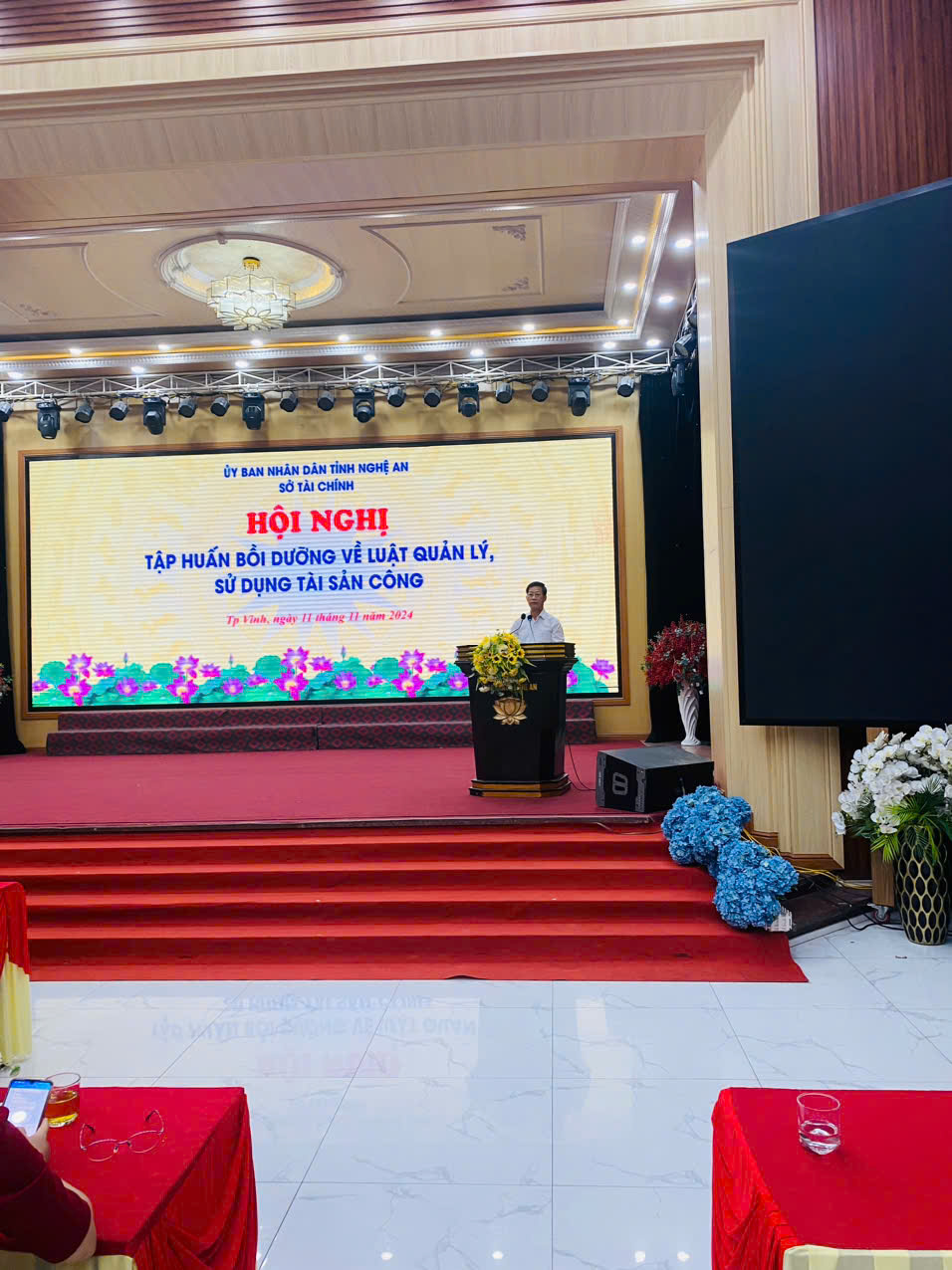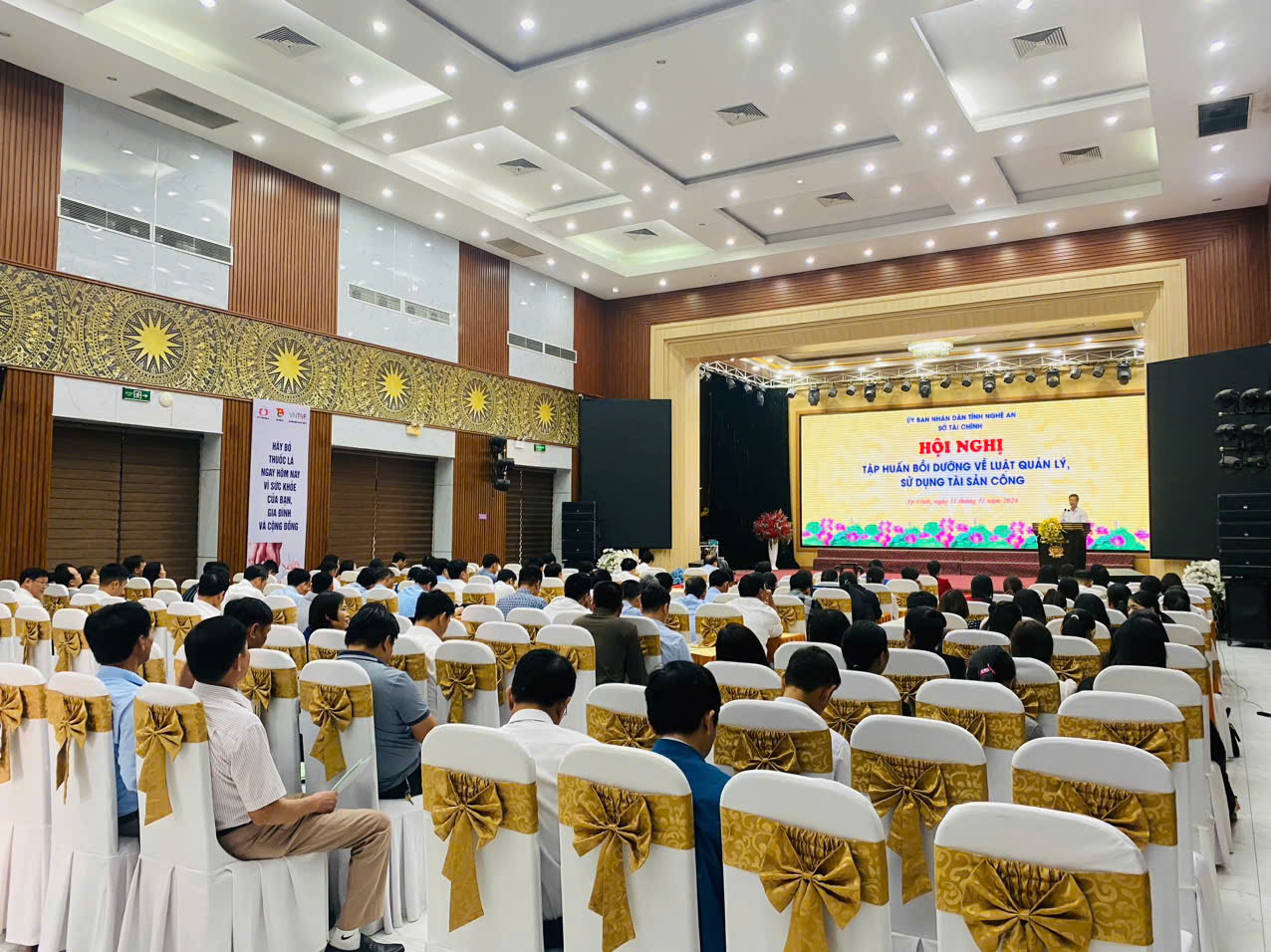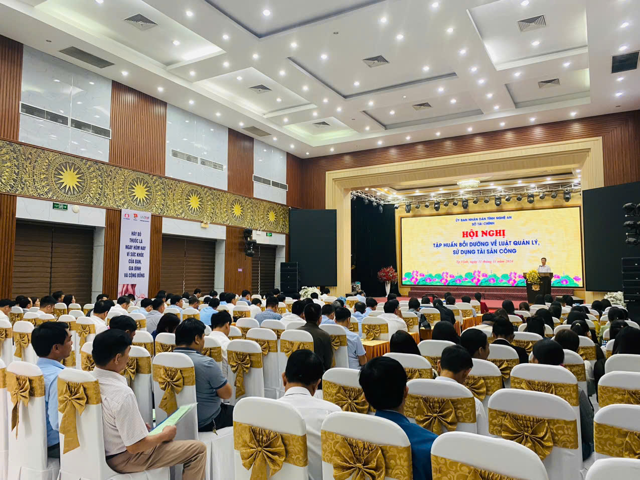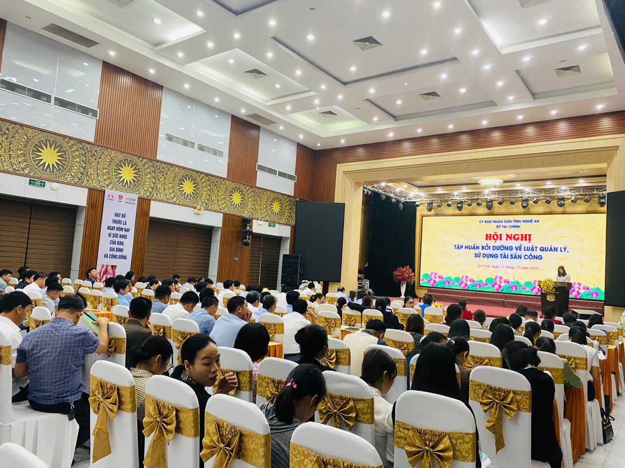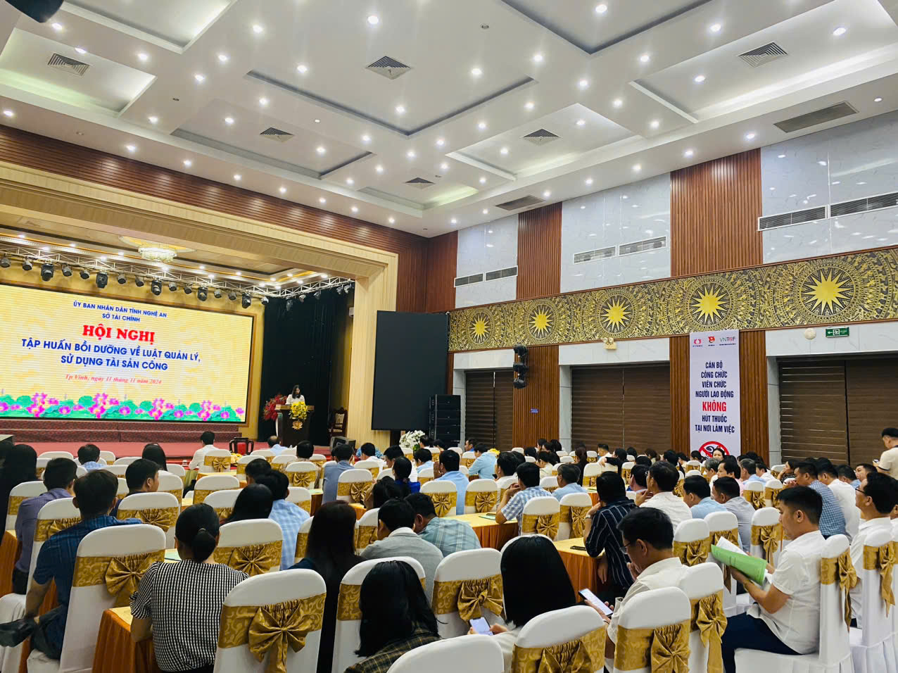 Thực hiện Kế hoạch số 213-KH/TU ngày 18/12/2023 của Tỉnh uỷ Nghệ An về đào tạo, bồi dưỡng cán bộ, công chức, viên chức tỉnh Nghệ An năm 2024; Quyết định số 1241/QĐ-UBND ngày 21/5/2024 của UBND tỉnh về việc giao dự toán thu, chi, nộp ngân sách nhà nước từ các khoản phí để lại năm 2024. Từ ngày 11/11/2024 Sở Tài chính mở lớp bồi dưỡng nghiệp vụ Quản lý, sử dụng tài sản công cho các cơ quan, đơn vị trực thuộc UBND UBND huyện Diễn Châu.